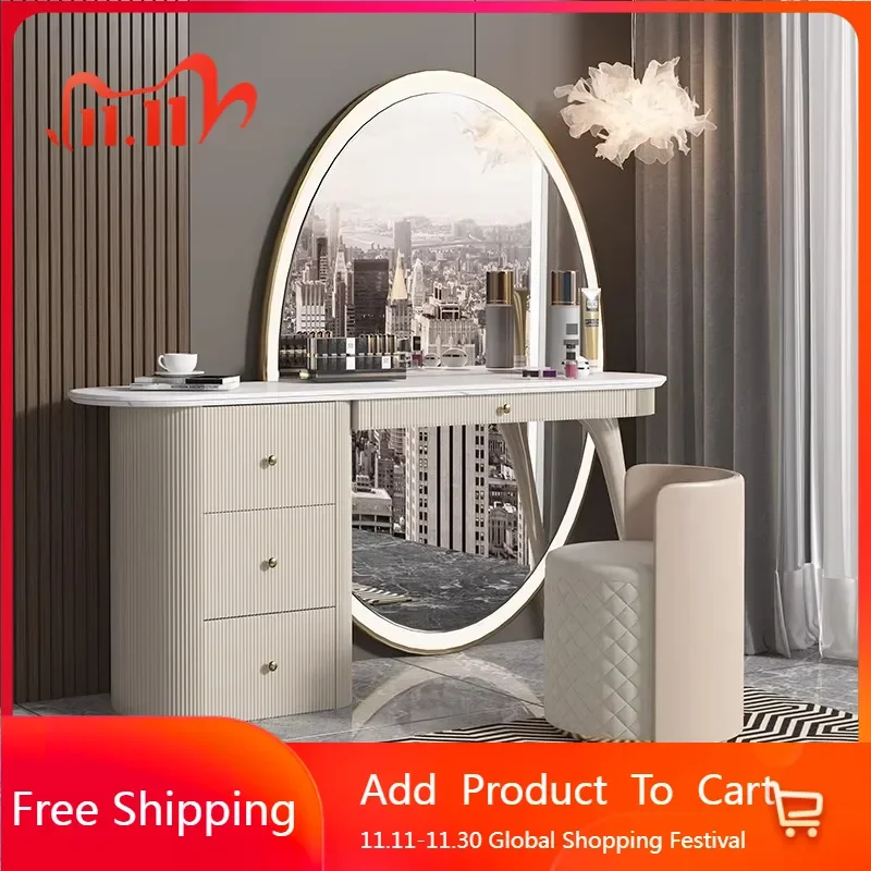 Nordic Style Dressing Table Organizer Gadets Kitchen Mirror Makeup Storage Nightstands Toaletka Z Lustrem Bedroom Furniture