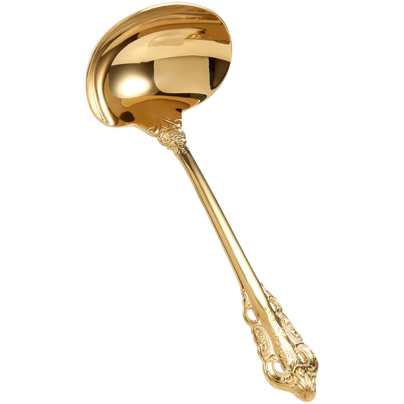 A20F-304 Stainless Steel Soup Ladle Cooking Tool Kitchen Accessories Gold Scoop Tablewares Gold Plated Soup Serving Spoon  Read more