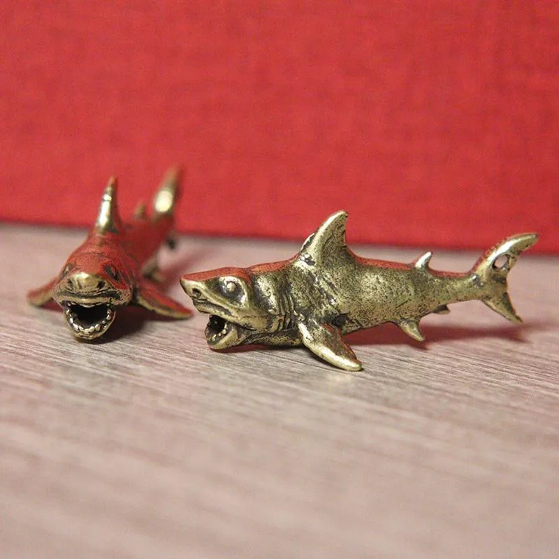 Brass Shark Animal Figurines Miniatures Desktop Ornament Home Decoration Craft Accessories Vintage Keychain Pendant Jewelry Gift