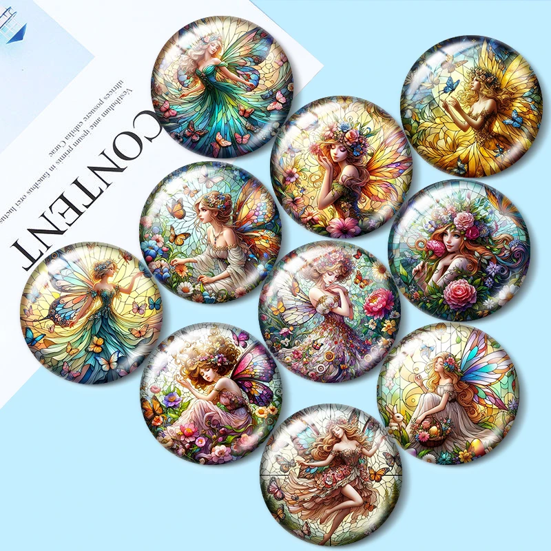 Colorful Painting Flower Fairy 12mm/16mm/18mm/25mm Round Photo Glass Cabochon Demo Flat Back Making findings