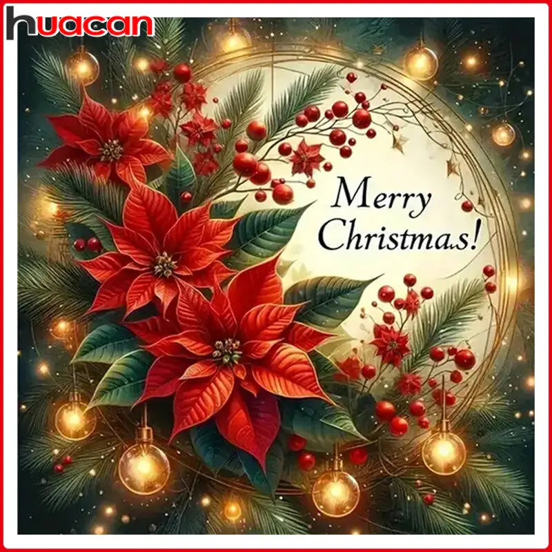Huacan 5D DIY Merry Christmas Diamond Painting Rose Green Leaves Full Square Round Diamond Mosaic Bell Art Handmade Gift