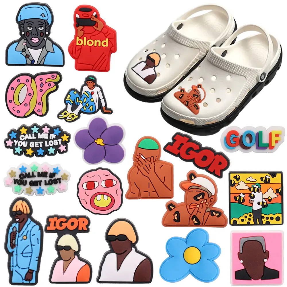 New Arrival 1-18PCS Hip Hop Man Singer PVC Flowers Shoe Decoration Adult Garden Sandals Charms for Backpack Clogs