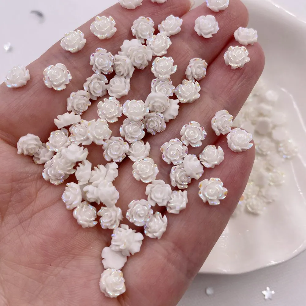 6mm 8mm AB Resin Pearl Clear 3D Rose Flower Crystals Gems Flatback Rhinestone Scrapbook Figurines Applique Nail Art Decor Crafts