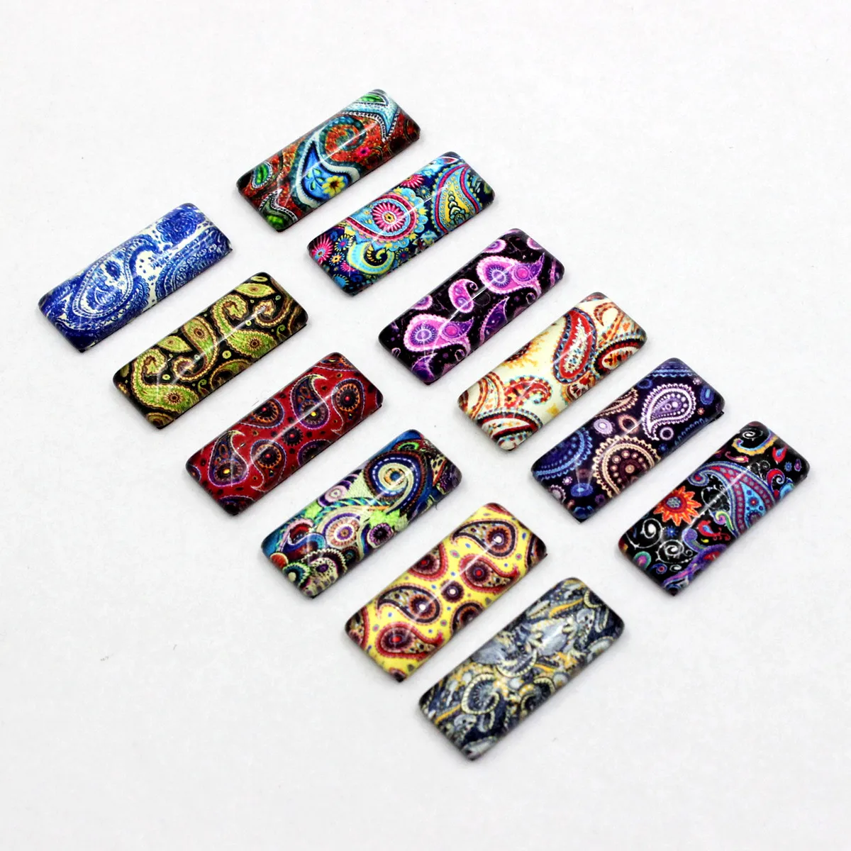 Onebeading 10x25mm Random Mixed Cashew Nuts Flowers Rectangle Pattern Glass Cabochon Flatback Photo DIY Accessories Paired 10pcs  Read more