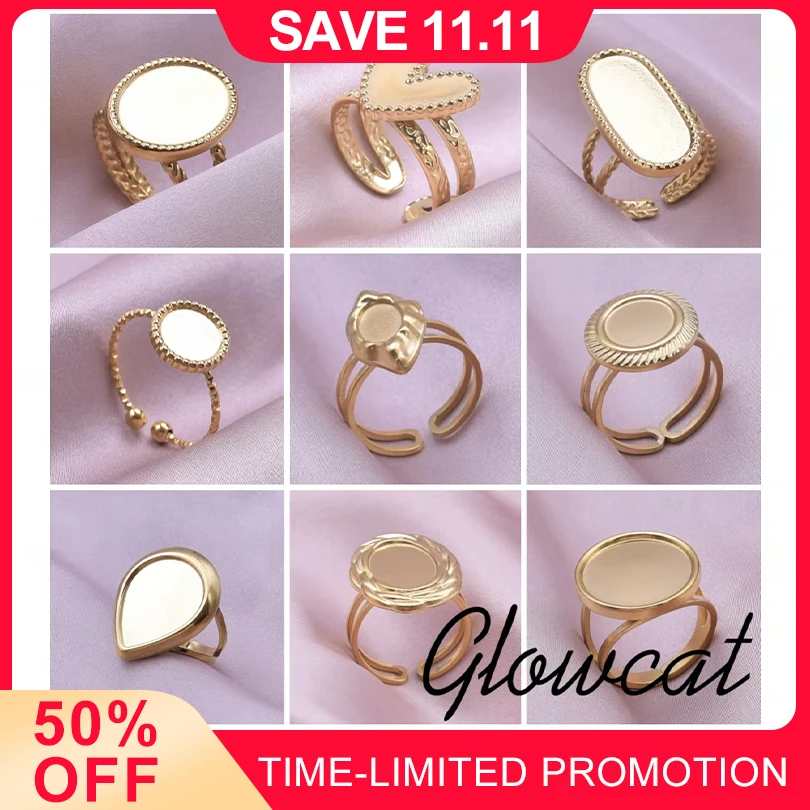 Classic Retro Opening Adjustable Ring Irregular Geometry Heart Ellipse Water Droplet Glossy Stainless Steel Rings Holiday Gift
