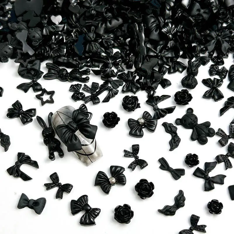 50PCS Multiple Style Black Bows Rose Nail Art Decorations Resin Mini Heart Star Dark Style Nail Charms Handmade DIY Manicure