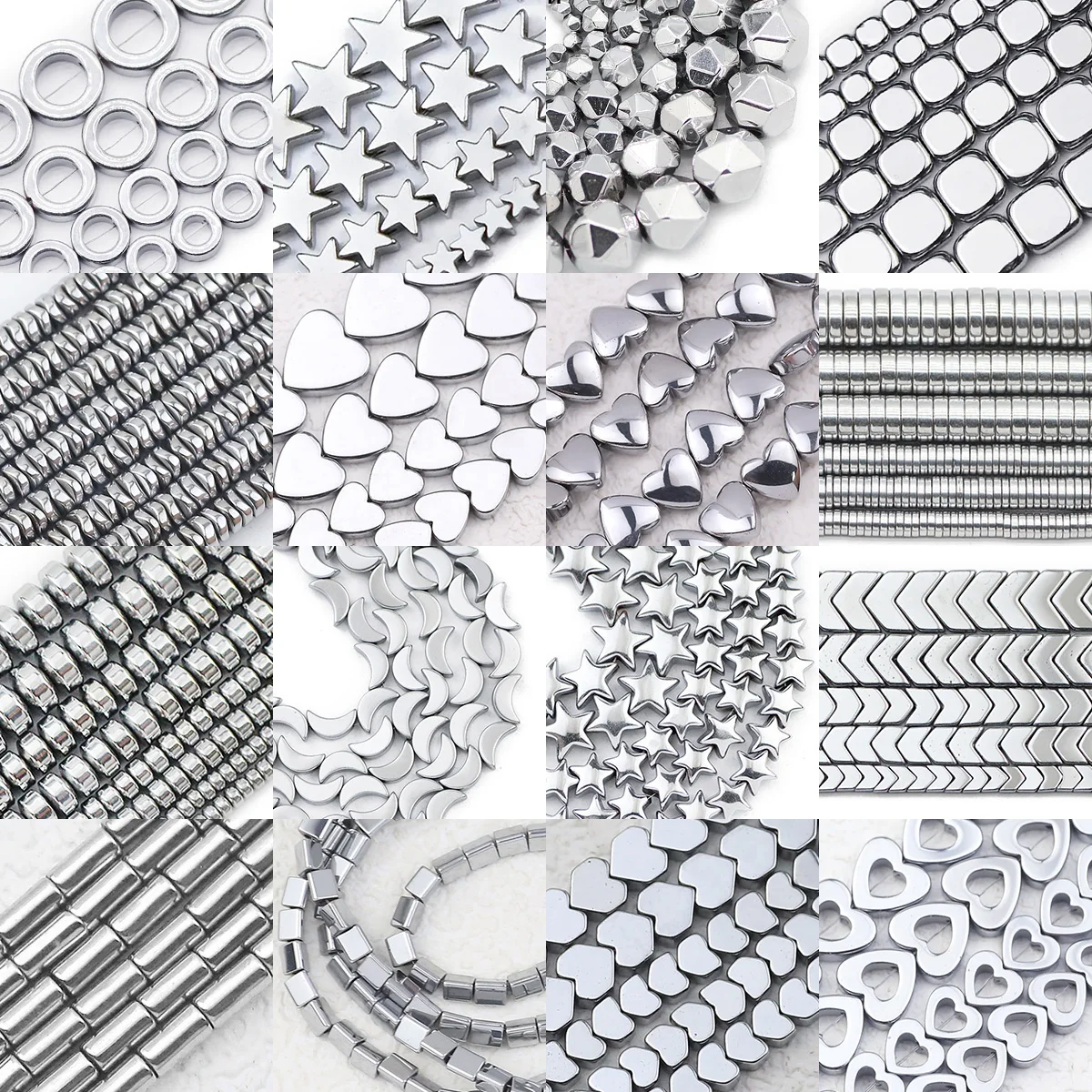 White K Color Star Moon Heart COIN Cube Round Tube Hematite stone Spacer Loose Beads for Love Jewelry Making DIY Bracelet 6 8mm