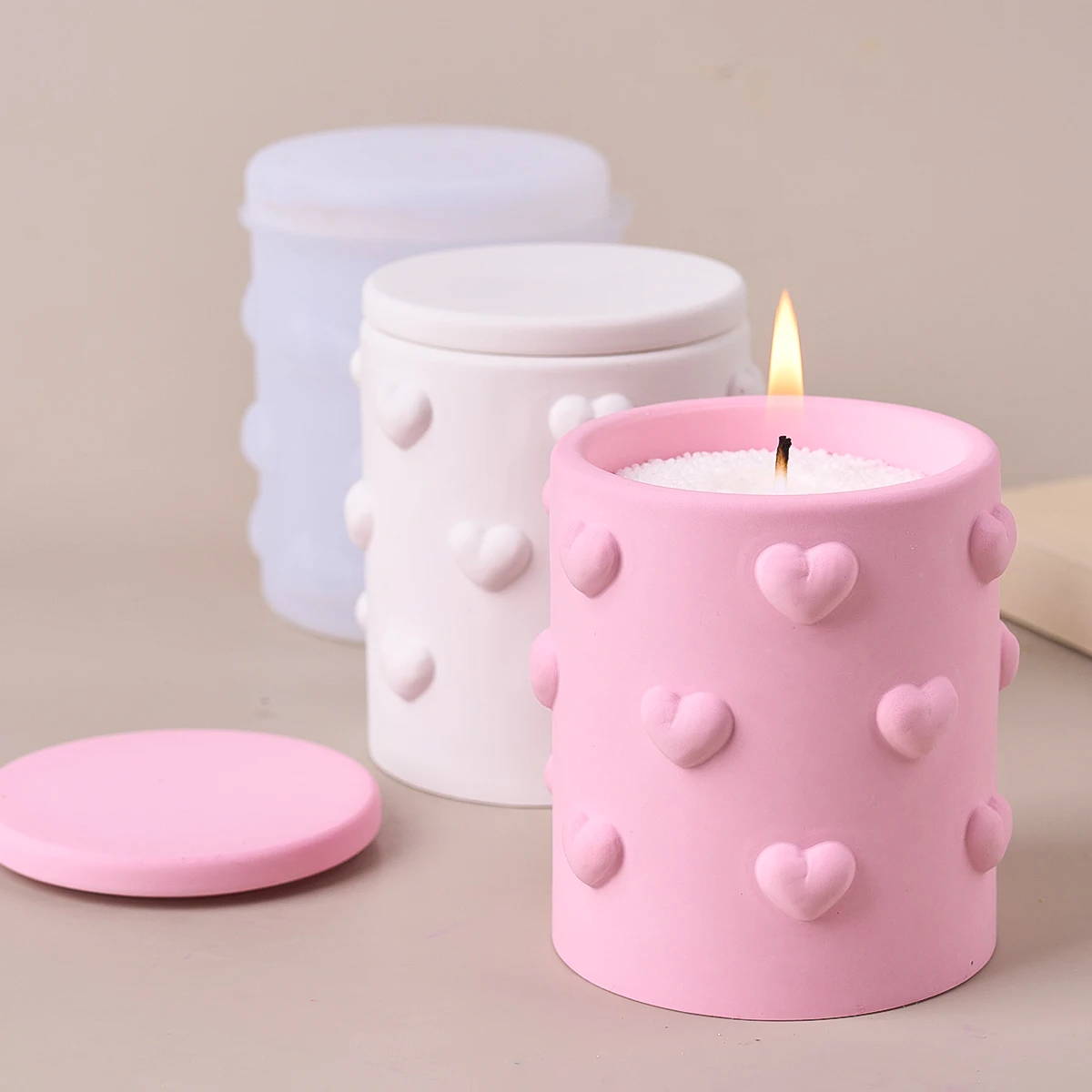 Love Heart Embossed Cup Silicone Molds DIY Flowerpot Candle Vessel Gypsum Plaster Cement Mould Jar Craft Pouring UV Resin Mold