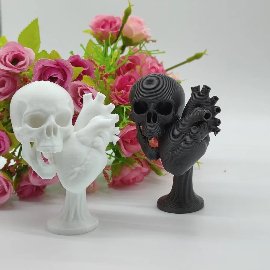Heart-shaped plastic skull statue, 3D printed skull decorative item, human skull model, indoor home decoration