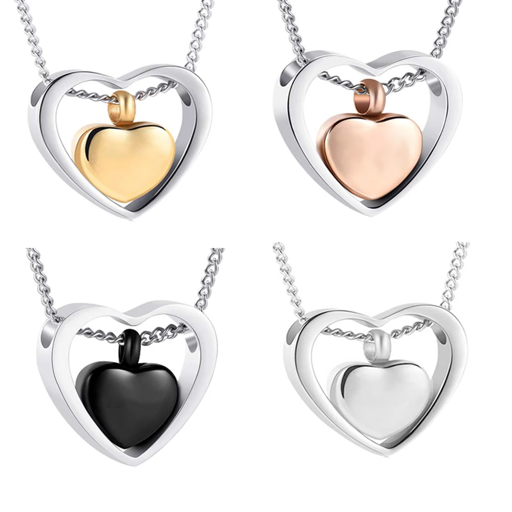 Stainless Steel Double Heart Cremation Urn Necklace Funnel Fill Kit Keepsake Memorial Ashes 3 Colors
