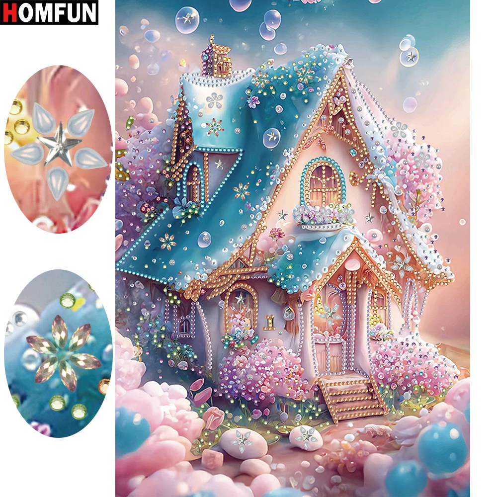 HOMFUN 5D DIY Diamond Painting Special Shape Drill Fairy House Landscape Crystal Embroidery Rhinestone Home Wall Decor Art Gift