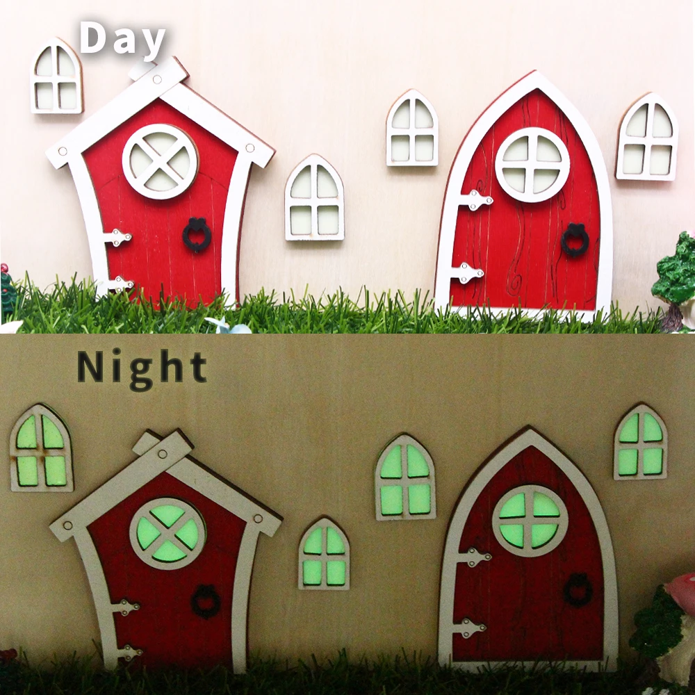 Mini Wooden Garden Fairy Gnome Luminous Night Elf Retro Door Chrismas Decor Miniature Figurines House Scene Model Decoration