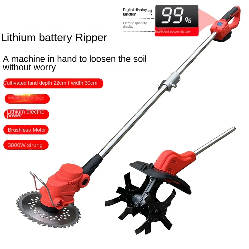 Lithium Battery Lawn Mower Small Household Mower Handheld Electric Mower Garden Trimmer Rechargeable Earth-Loosening Wheel 예초기  Read more