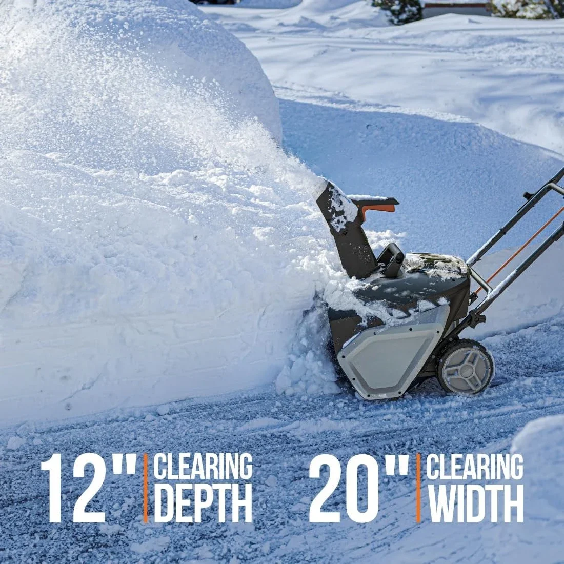 2X20V Cordless Snow Blower, 20-inch Snow Thrower with 4.0Ah Battery, Electric Snow Blowers with LED Spotlight and Brushless Motor