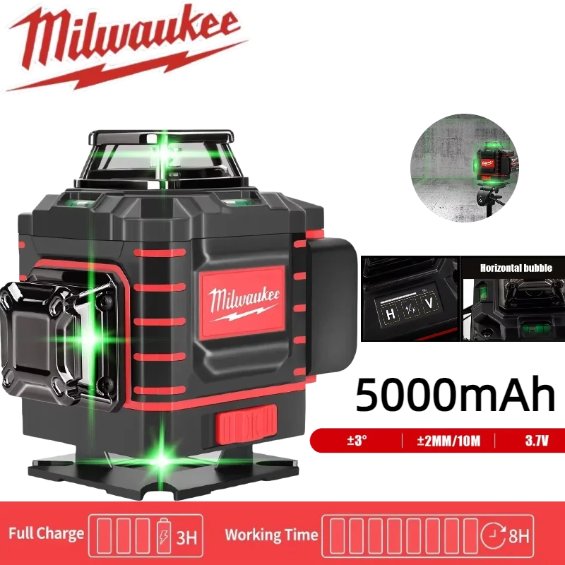 Milwaukee Laser Level Green 16 Lines 4D Self Leveling 360 Horizontal And Vertical Super Powerful Laser level Beam  Read more