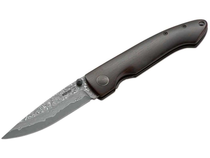 Boker Plus Damascus Gent I Folding Knife 3.23in Damascus Drop Point Blade Ebony Black Handle 01BO101DAM