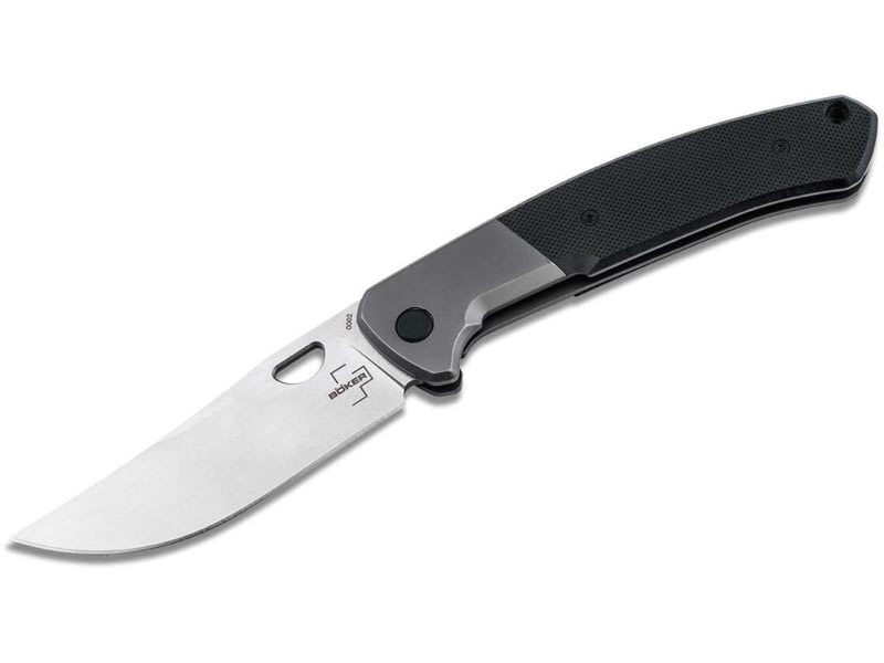 Boker Plus Elso Folding Knife 4.75in Closed 3.38in Stonewash D2 Tool Steel Blade Black G10 Handle 01BO554