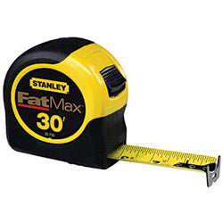 Stanley Bostitch FatMax Classic Tape Measure, 1-1/4 in W x 30 ft L, SAE, Black/Yellow Case (680-33-730)