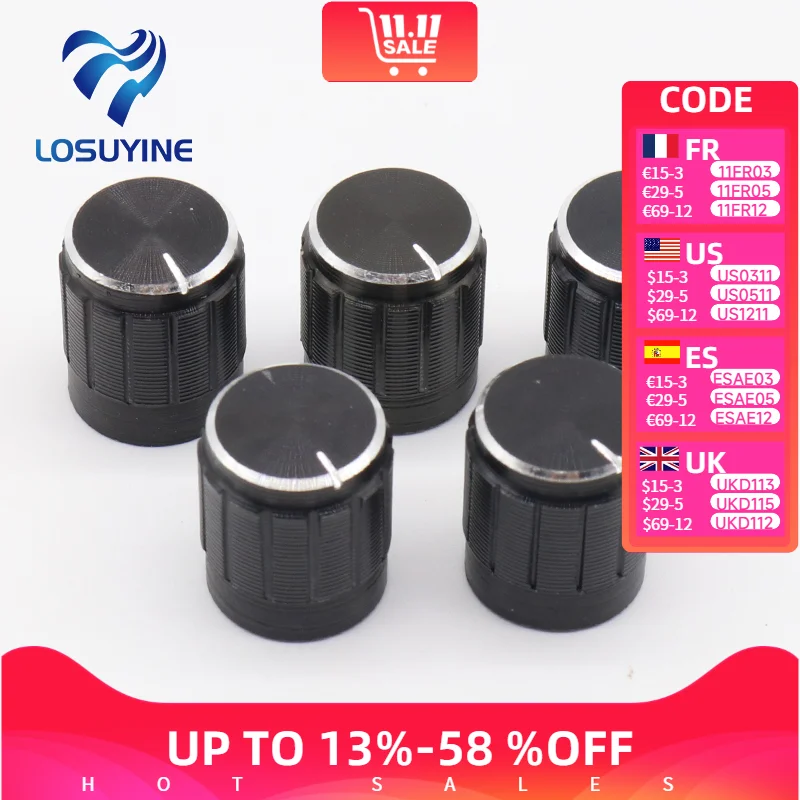 10 PCS Nonslip Ribbed Black 6MM Silver Tone Plastic Potentiometer Rotary Control Knobs Caps 15x17mm  Read more