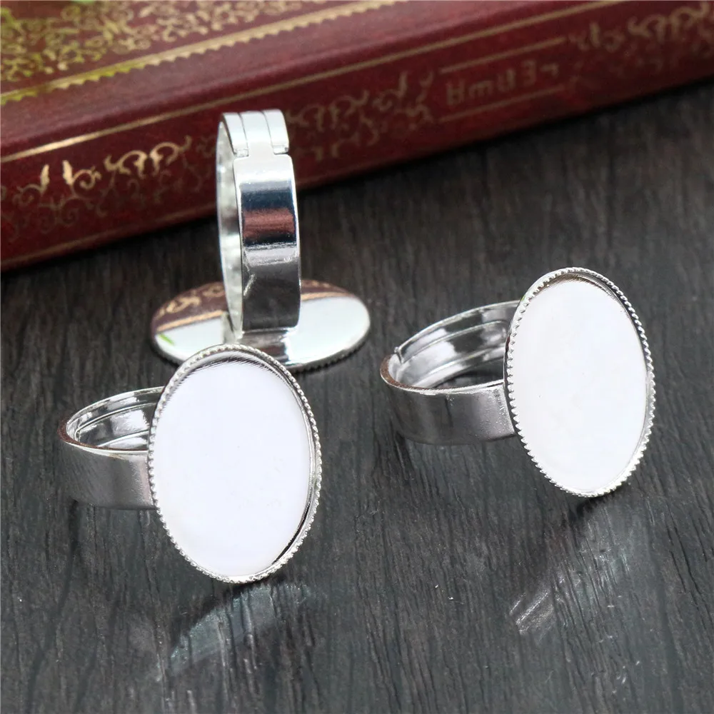 13x18mm 10pcs Bright Silver Plated Color Brass Oval Adjustable Ring Settings Blank/Base, Fit 13x18mm Glass Cabochons K6-07