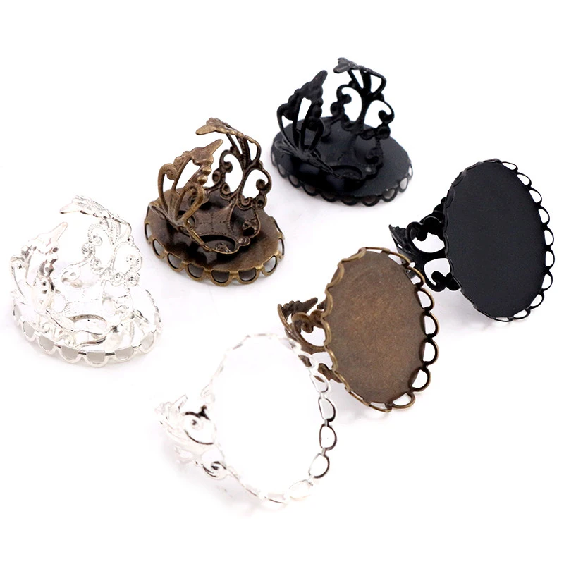 18x25mm 5pcs Black Silver Plated Bronze Brass material Oval Adjustable Ring Settings Blank/Base, Fit 18x25mm Glass Cabochons