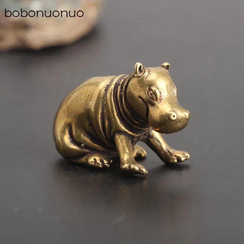 Vintage Bronze Hippopotamus Statue Copper Craft River Horse Ornament Brass Feng Shui Home Decoration Accessories Desk Decor Gift