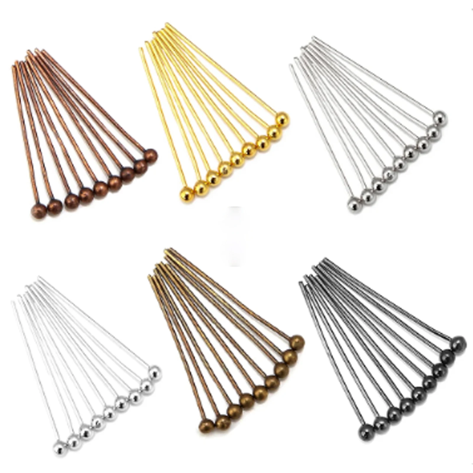 SAUVOO 100-200pcs/lot Copper Ball Head Pins Gold Silver 10-70mm Metal Head Pins Needles For DIY Jewelry Making Earrings Findings