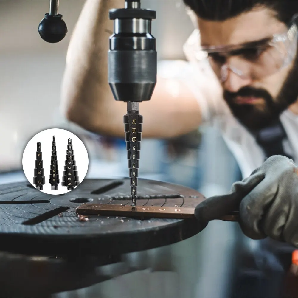 3PCS Hss Steel Titanium Coated Step Drill Bits 3 12mm 4 12mm 4 20mm Step Cone Cutting Tools Steel Wood Metal Drilling Power Set  Read more