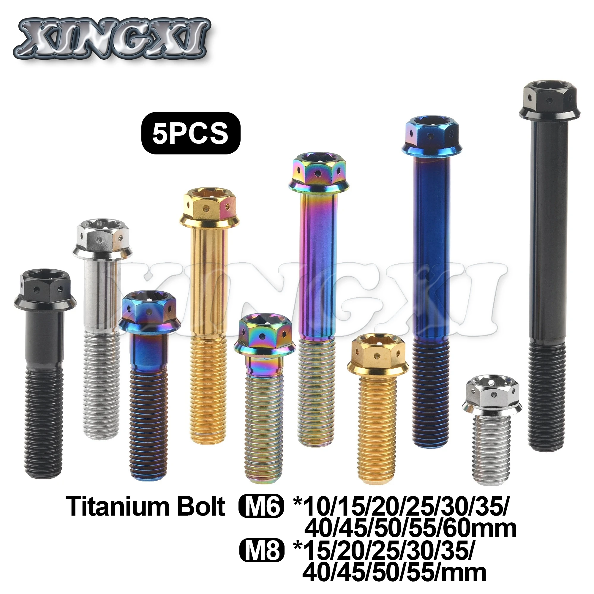 Xingxi 5pcs Titanium Bolt M6/M8x10/15/20/25/30/35/40/45/50/55/60mm Hex Hole Flange Head Screw for Motorcycle Disc Brake Fastener