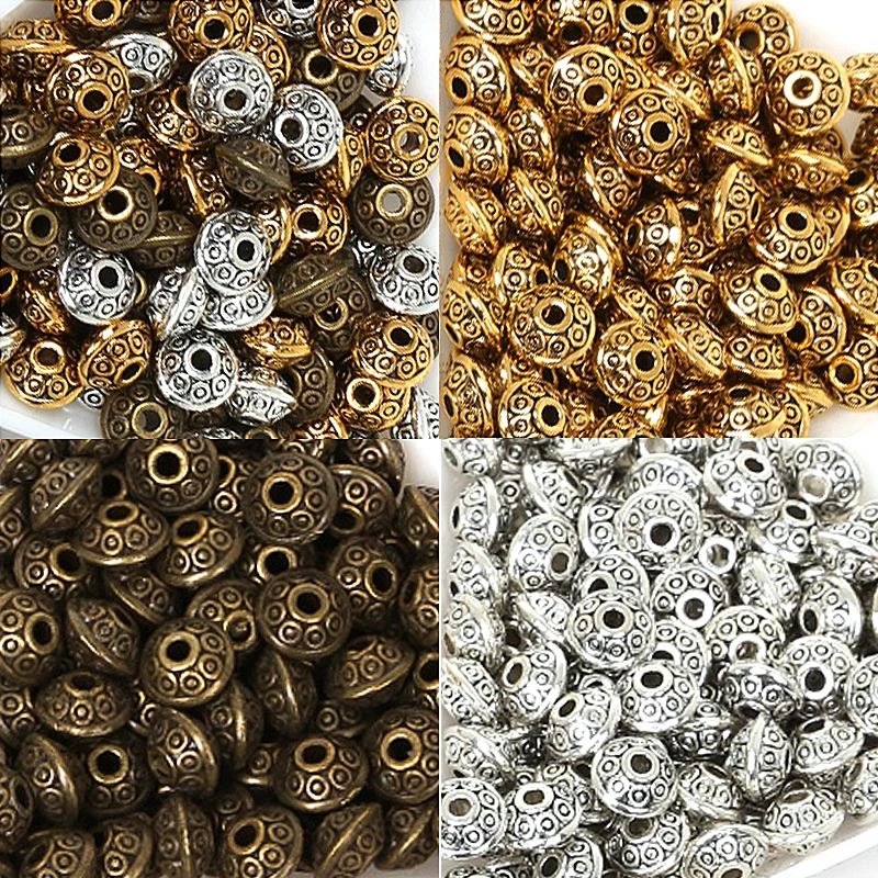 50Pcs/Lot Metal UFO Shape 6mm Mix Antique Gold/Bronze Plated Spacer Bead Cone Pattern Loose DIY Beads for Jewelry Making  Read more