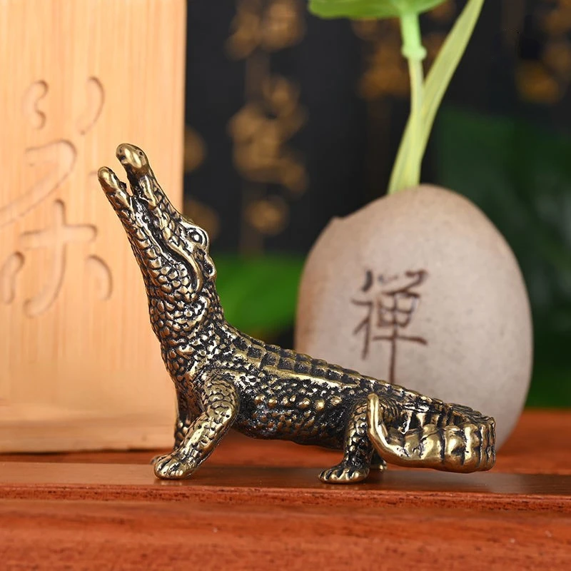 Antique Bronze Crocodile Miniature Figurines Vintage Brass Mini Alligator Statue Desk Ornaments Home Feng Shui Decor Crafts  Read more