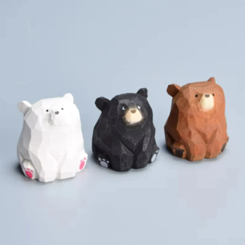 1Pcs Cute Mini Wooden Bear Miniature Solid Wood Hand Carved Bear Figurines Polar Bear Crafts Ornaments Tabel Decorate Kids Gifts