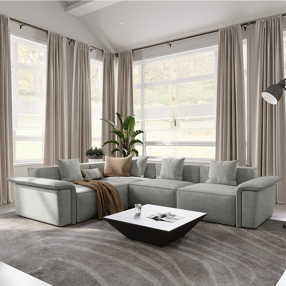 [Individual Seat Cushions]This modular sectional sofa couch adopts independent seat cushions to fully consider your comfort, which is both comfortable and stylish. The individual seat cushions ensure that each person seated on the sofa gets the full...  Read more