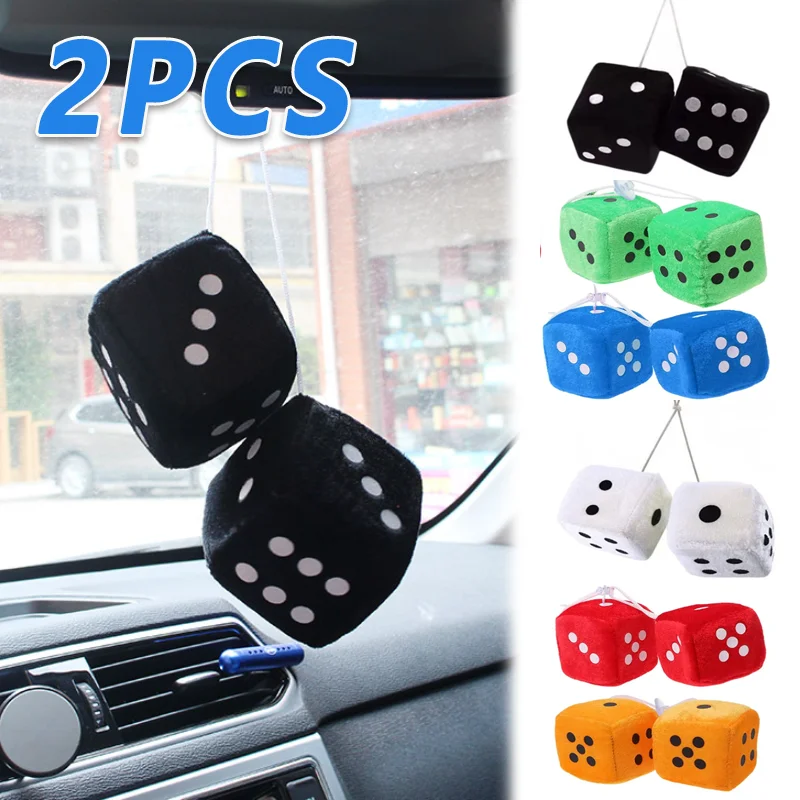 2pcs 6Cm Fuzzy Multicolor Plush Dices Car Hanging Pendant New Year Dice Velvet Dice Model Decoration Rearview Mirrors Styling  Read more