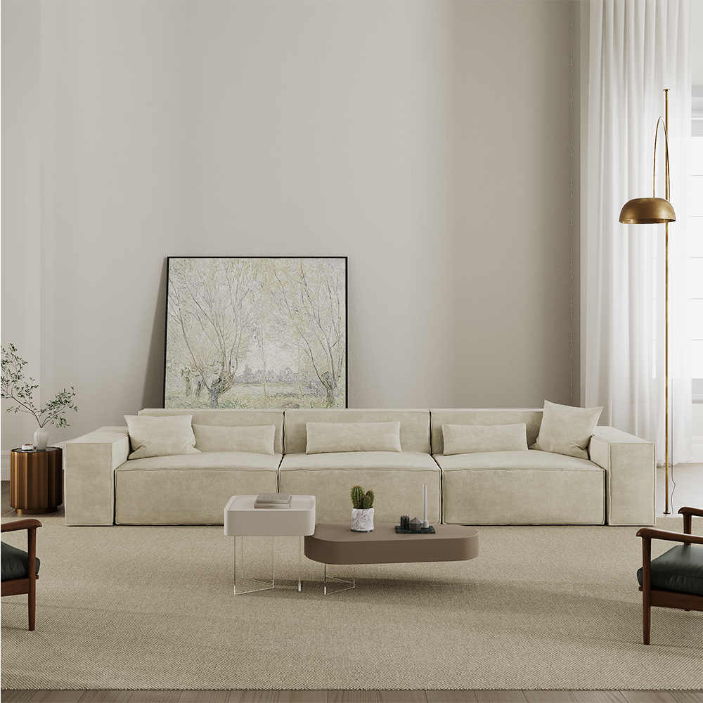 [3 Seater Convertible Sofa Bed Couch]The sectional couch bed with 5 couch pillows features wireless smart remote control, a simple press could smoothly transforms l shaped couch with chaise into a spacious u shaped couch bed. The beige u shaped...  Read more