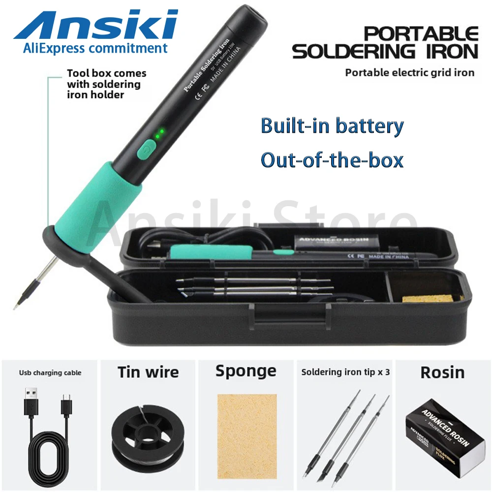 ANSIKI C212S Wireless Soldering Iron Portable 180-450 °C adjustable temperature built-in battery with 3Tip Soldering Tool kit