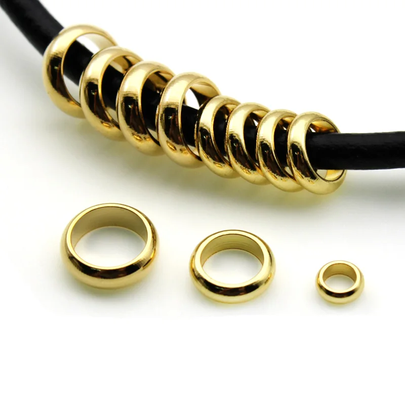 50pcs Stainless Steel Loose Spacer Rings Beads Gold Color Metal Loose Big Hole Stopper Beads for Bracelet DIY Jewelry Making