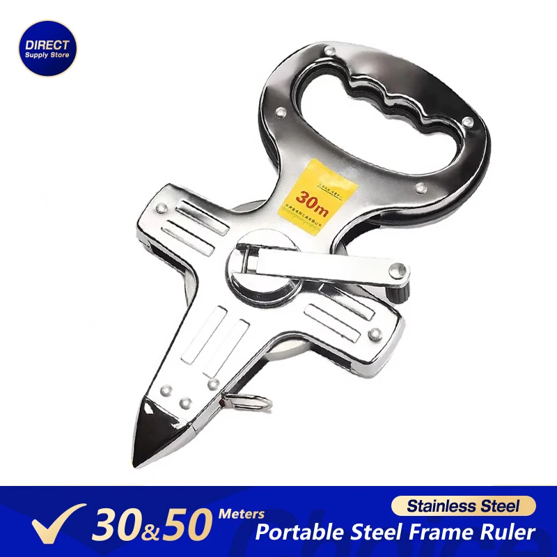 30m 50m Stainless Steel Measuring Tape Metric Scale High Precision Surveyor Carpenter Construction Tool with Steel Frame