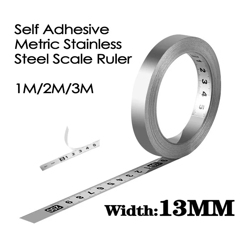 13MM Width 1-3m Stainless Steel Miter Track Tape Measure Self Adhesive Metric Scale Ruler Rust-Proof Durable Wear-Resistan Ruler