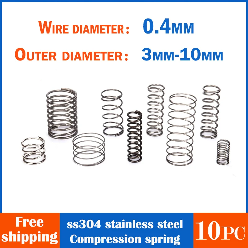 10Pcs SUS304 Stainless Steel Compression Spring Wire Diameter 0.4mm Return Spring Small Spiral Sspring Ressort 5mm 10mm 20mm 30
