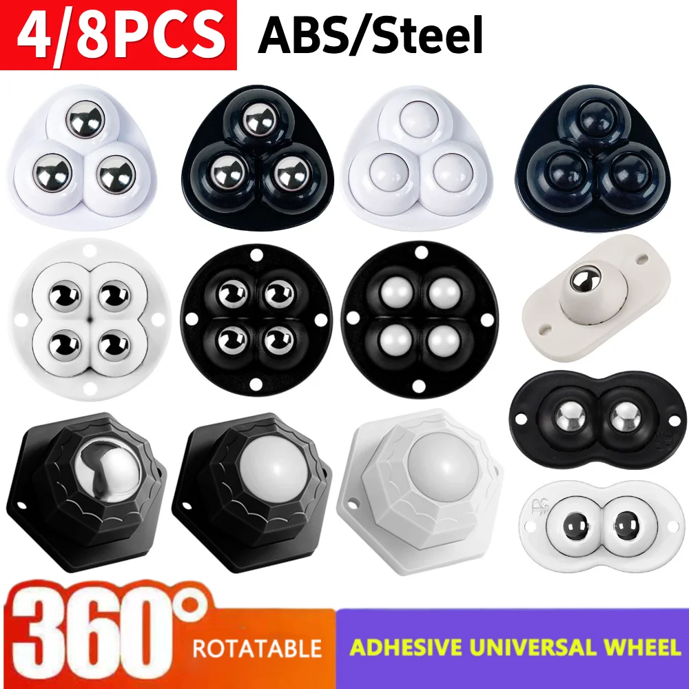 4-40pcs For Furniture Stainless Steel 360 Degree Roller Self Adhesive Furniture Caster Home Strong Load-bearing Universal Wheel