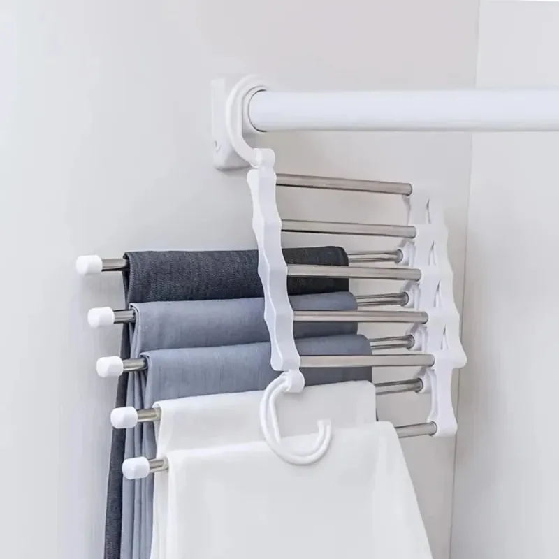 5 In 1 Magic Trouser Rack Hangers Stainless Steel Folding Pant Rack Tie Hanger Shelves Bedroom Closet Organizer Wardrobe Storage