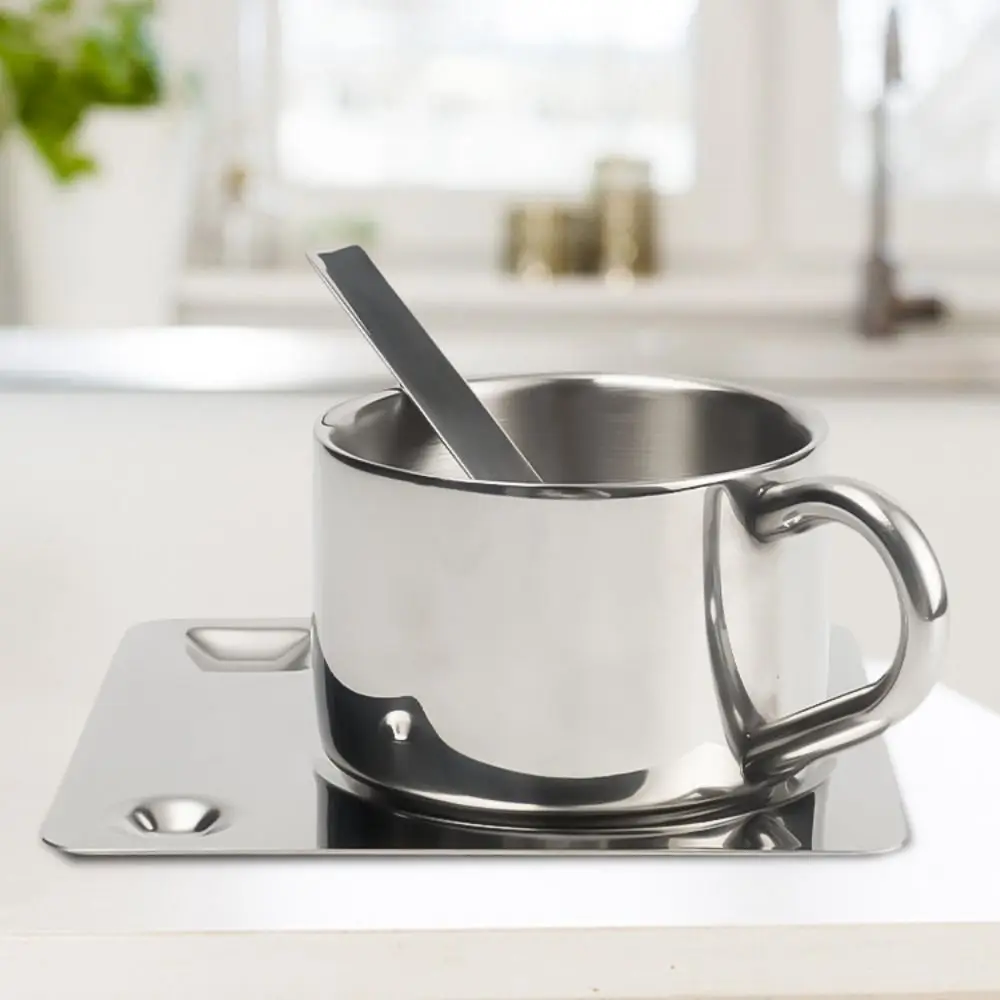 Minimalist Nordic Mug 3pcs Set 304 Stainless Steel Coffee Mug Heat Resistant Milk Cup with Saucer Spoon Placemat Tableware Set