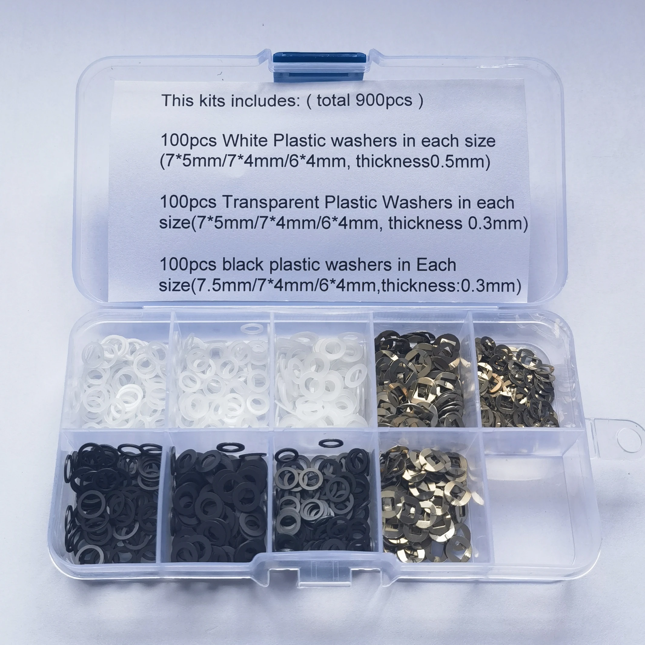 900pcs/Lot in Box Scissor Repair Kit Hairdressing Scissor Accessory Plastic 7*5/7*4/6*4mm Washers Barber Salon Scissor Parts