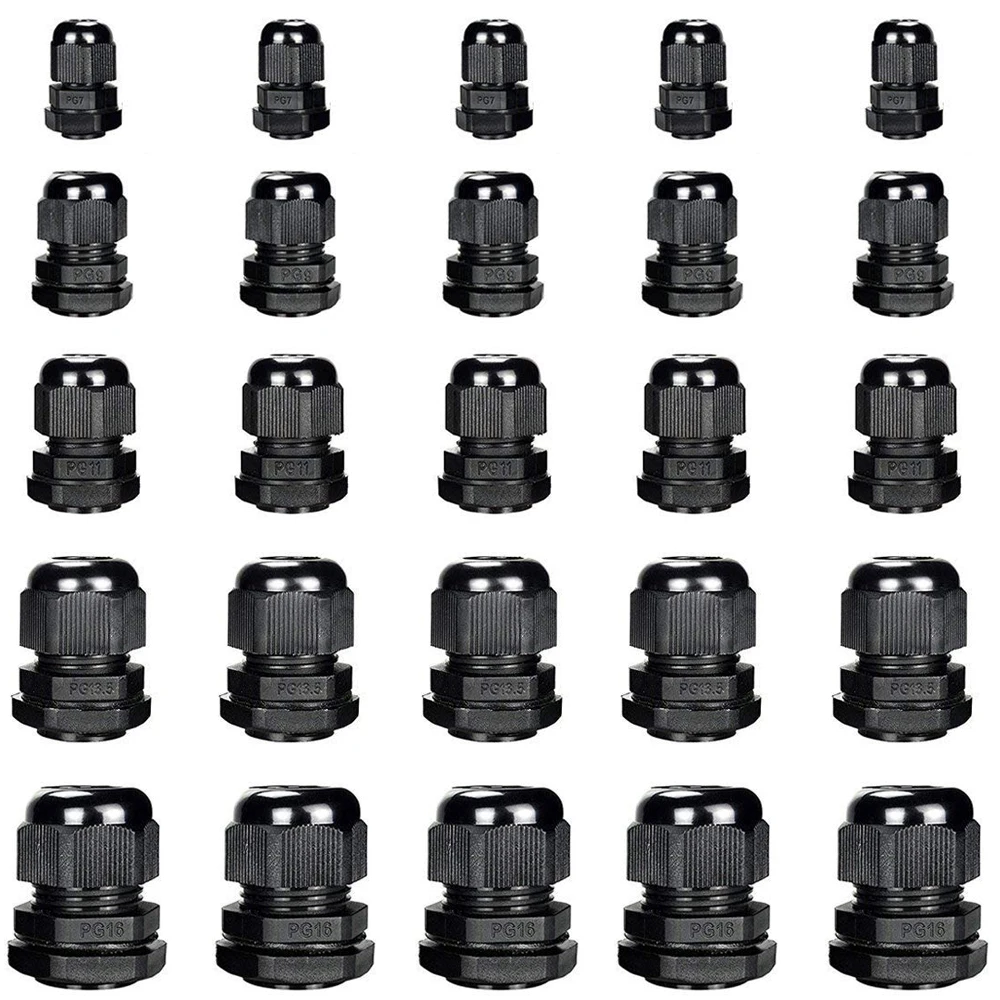 10PCS Cable Gland Kit IP68 Waterproof Black Plastic Cable Gland Wire Cable Electrical Connector