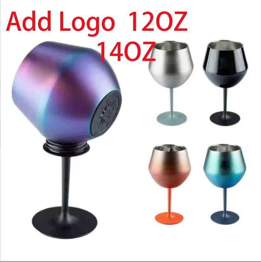 Custom LOGO 12OZ 14OZ Wine Beer 304 stainless steel goblet with detachable plastic part heat cold wine glass coffee cup