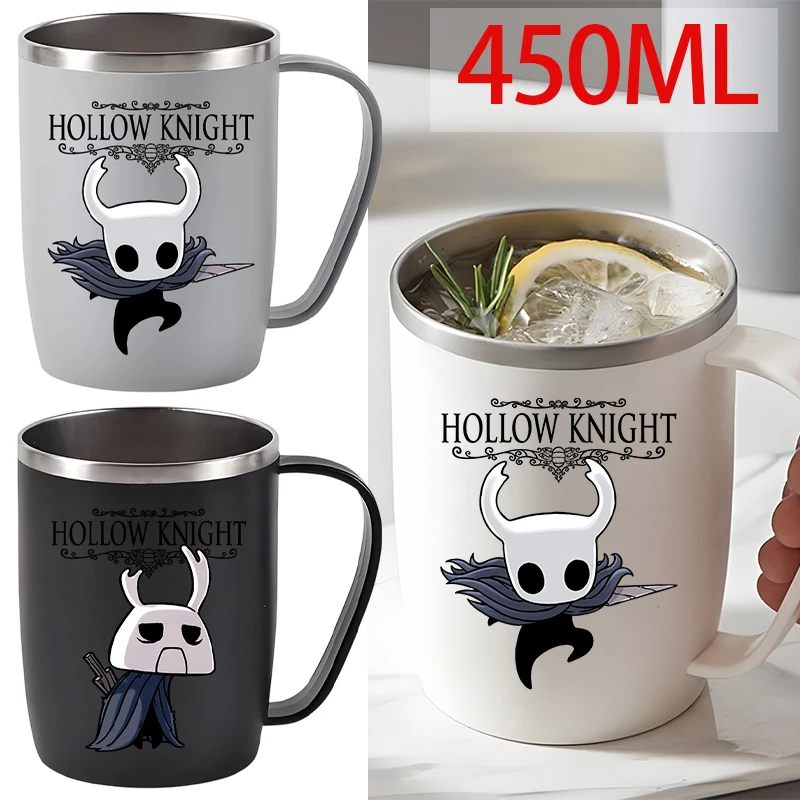 450ml Hollow Knight Water Mug Double Layer 304 Stainless Steel Coffee Milk Juice Cups with Plastic Handle Home Toothbrush Cup  Read more