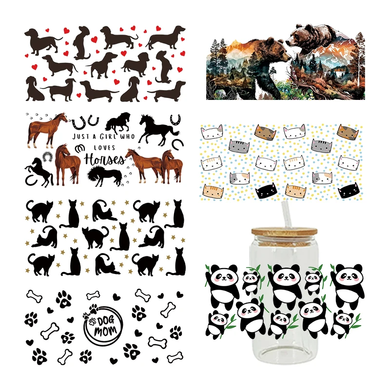 3D UV DTF Transfers Stickers 16oz Cup Wraps Cow Dog Cat Animal Printed For DIY Glass Ceramic Metal Leather Etc. D2266