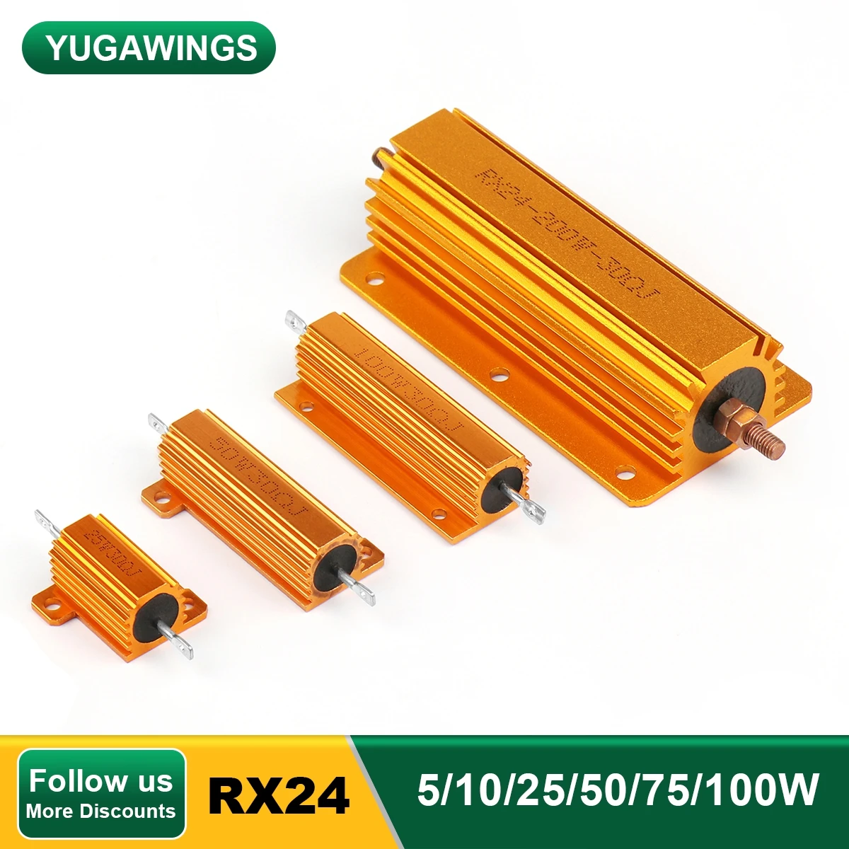 5W 10W 25W 50W 100W Aluminum Power Metal Shell Wirewound Resistor RX24 0.1R~10K 1 2 3 5 6 8 10 20 1K 10K ohm Gold Resistors