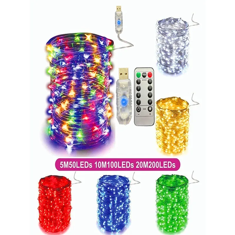 New Year Christmas Decoration Holiday Fairy Lamp Copper Wire USB Led Indoor Home Decor Warm White RGB String with Remote Control